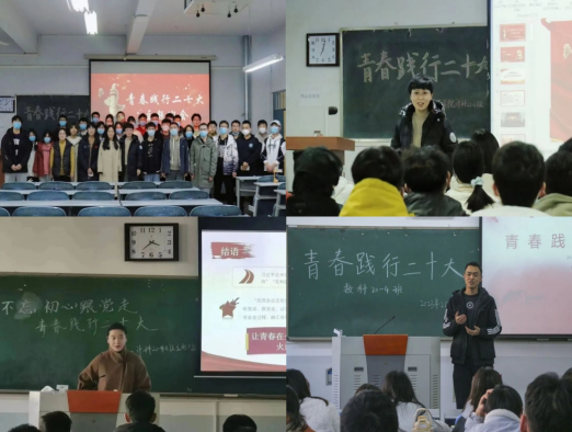 各班级根据青春践行二十大的主题,围绕“爱国、团结、奋斗、科学、互助”五个关键词召开班会,班会上,同学们踊跃发言,通过亲身讲述、分享交流、朋辈对话等形式,生动展示当代青年将“小我”成长融入“大我”奋斗之中的先进事迹和青春风采,积极探讨党的二十大精神对自己的各种影响,并为自己的未来规划方向。同时,各班班主任和辅导员老师们对同学们提出了相应的要求,同学们要牢记习近平总书记对广大青年的殷切嘱托与期盼,在实践中为民族复兴大业贡献青春的力量。院党委副书记蔡镔围绕“青春践行二十大”主题对同学们提出了三点希望和要求:一是厚植家国情怀,勇担时代重任;二是提升人格修为,激扬青春梦想;三是提高文化水平,成就奋斗人生。会后,同学们纷纷表示感受到了新时代对青年大学生的召唤,日后将以党的二十大精神为指引,聚焦国家的发展和社会需要,努力学习,提升知识储备,让青春在全面建设社会主义现代化国家的火热实践中绽放绚丽之花。