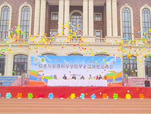 第十届院田径运动会正式开始。此时五彩的气球在微风中缓缓飞向天空,每一个气球都承载着同学们的希望与热情,如同他们在赛场上追逐胜利的决心一般坚定不移。