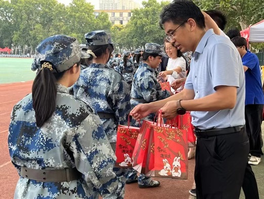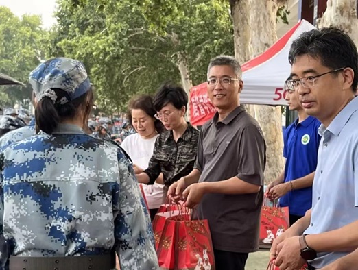 对新生的深切关怀,9月14日,院党委书记苏楠携院领导班子到达文化路校区体育场看望慰问学生军训情况,详细了解军训进展,对正在接受军事训练的新生们进行了亲切的慰问并致以节日的问候。
