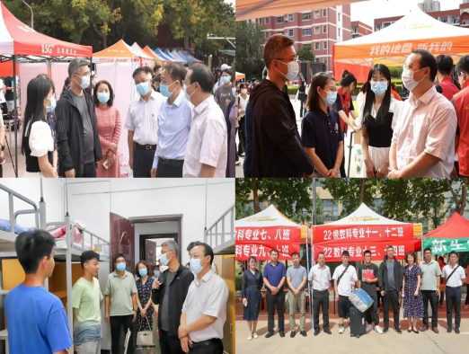 迎新点查看新生报到进度及现场迎新工作安排。指导现场,院领导与新生亲切交谈,询问入学手续办理情况、入校感受、宿舍安排等,并嘱咐学生要加倍珍惜大学美好时光,不断充实自我,提升自我,在青春道路上不断向前。