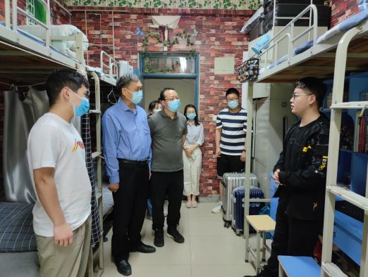 领导深入学生宿舍,就疫情防控、作息饮食、线上学习、未来规划等方面与同学们亲切交谈,嘱咐同学们要严格遵守疫情防控期间学校管理制度,积极参与线上课堂教学,鼓励大家携手同心,战胜疫情。