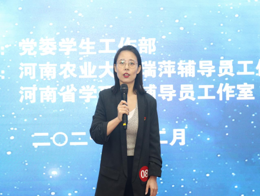 本网讯(通讯员 郭潇)12月2日,2021年河南农业大学辅导员素质能力大赛总决赛于龙子湖校区教学楼大教室1隆重举行。小蓝视频张玥老师经过赛前认真准备、赛场稳定发挥,经过四轮比赛,凭借扎实的理论功底和出色的语言魅力荣获大赛一等奖。