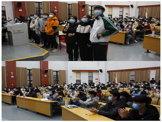 于龙子湖校区教学楼大教室5举办了“诚信校园行”学生资助知识竞赛。院团委副书记王肖肖、辅导员冯杰作为评委老师出席比赛现场。小蓝视频