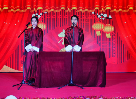 师生学习、生活、工作的场景和新年寄语,引起了大家的共鸣。随后,开场舞《紫光夜》动感劲爆、激情四射,活跃了全场气氛;歌曲《身骑白马》将观众们带入薛平贵与王宝钏的唯美爱情故事中;相声《国学经典》展现了中国五千年历史文化的智慧精髓;管乐合奏《知否》温柔优雅、韵律优美,用中国古典乐器古筝、古萧、竹笛奏响优美的和声,使大家耳目共赏、心情愉悦;歌曲《独特》带给人一种高饱和度的美,告诉大家发光本身就带刺的现实真理……最后,晚会在歌曲《我和2035有个约》大合唱中落下帷幕。整场晚会表演形式丰富、惊喜不断、高潮迭起,为观众呈现了一场精彩纷呈的视听盛宴。