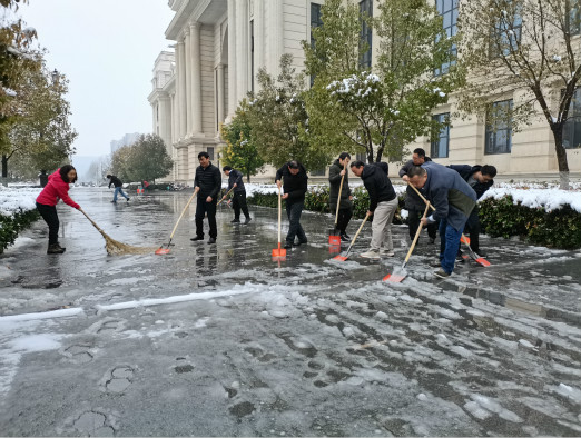 此次清扫积雪活动确保了校园道路出行安全和环境秩序整洁,为迎接同学们顺利返校奠定了基础。
