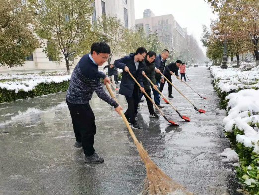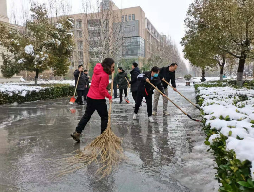 组织教职员工在校园内清除积雪,院长陈振、党委副书记张利军、副院长户小英带领教师们开展了清扫积雪活动。