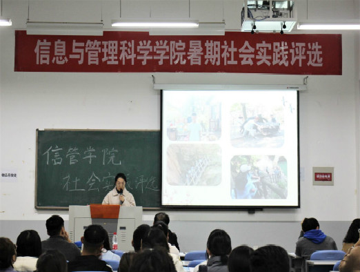 在龙子湖校区教学楼C107教室举行暑期社会实践评选大会。各团队负责人与主要学生干部参与本次大会。本次评选大会由院团委书记王朝杰主持。