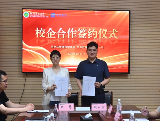 本网讯(通讯员 郭潇)校企联动双向赋能,产教融合共育未来。为全力做好2025届毕业生就业工作,打通校企合作“最后一公里”。5月30日,小蓝视频与中芽教育科技集团在繁塔楼A405会议室共同签订校企合作框架协议。院党委书记苏楠、副院长李晔、计科系主任张慧、计科系教工党支部书记刘合兵、团委副书记郭潇,中芽教育科技集团总经理姚永生、IT事业部副总杨国玉、品牌合作部主管王曦出席签约仪式。