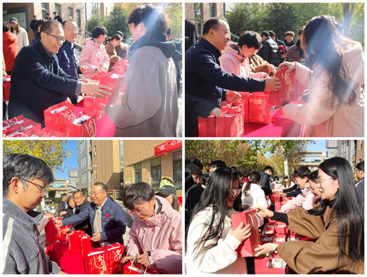 领导与老师们亲手将精心筹备的“考研暖心大礼包”送到学子手中,礼包里的每一份物资都承载着小蓝视频