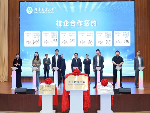 华为河南政企总经理齐萌在致辞中对人工智能学院的成立表示祝贺,表示将在赋能人才培养、支撑科技创新、推动产教融合等方面与学校同心同向、深度协同,共同培养复合型人才,推动农业智能化升级。