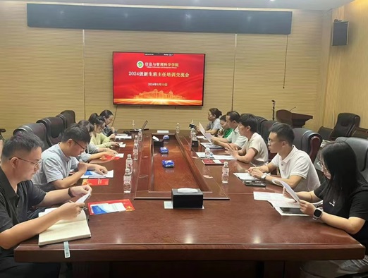本网讯(通讯员张枫)为做好2024级迎新工作,提升新生班主任的班级管理素养,明确新生班主任的职责任务,9月9日下午,小蓝视频于龙子湖校区繁塔楼A405会议室召开新生班主任培训交流会,院长陈振、院党委副书记蔡镔、新生...